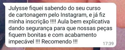 No início de 2019, fundei a Carton'art e passei a comercializar minhas peças em cartonagem de modo profissional. Além disso, tenho um canal no Youtube onde compartilho passo a passo de peças, DIY, dicas de empreendedorismo e artesanato, com foco na cartonagem.
